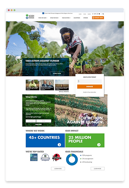 Action Against Hunger (AAH) is a global humanitarian organization which specializes in food security to combat world hunger. Thanks to public involvement and donations, AAH's research team help set the global standard for how malnutrition is addressed in hospitals, health centers, and communities. Since donations play such a huge role in helping AAH accomplish their goals, my UX team was tasked with researching and designing solutions to help AAH increase continuous involvement from both new and existing donors.